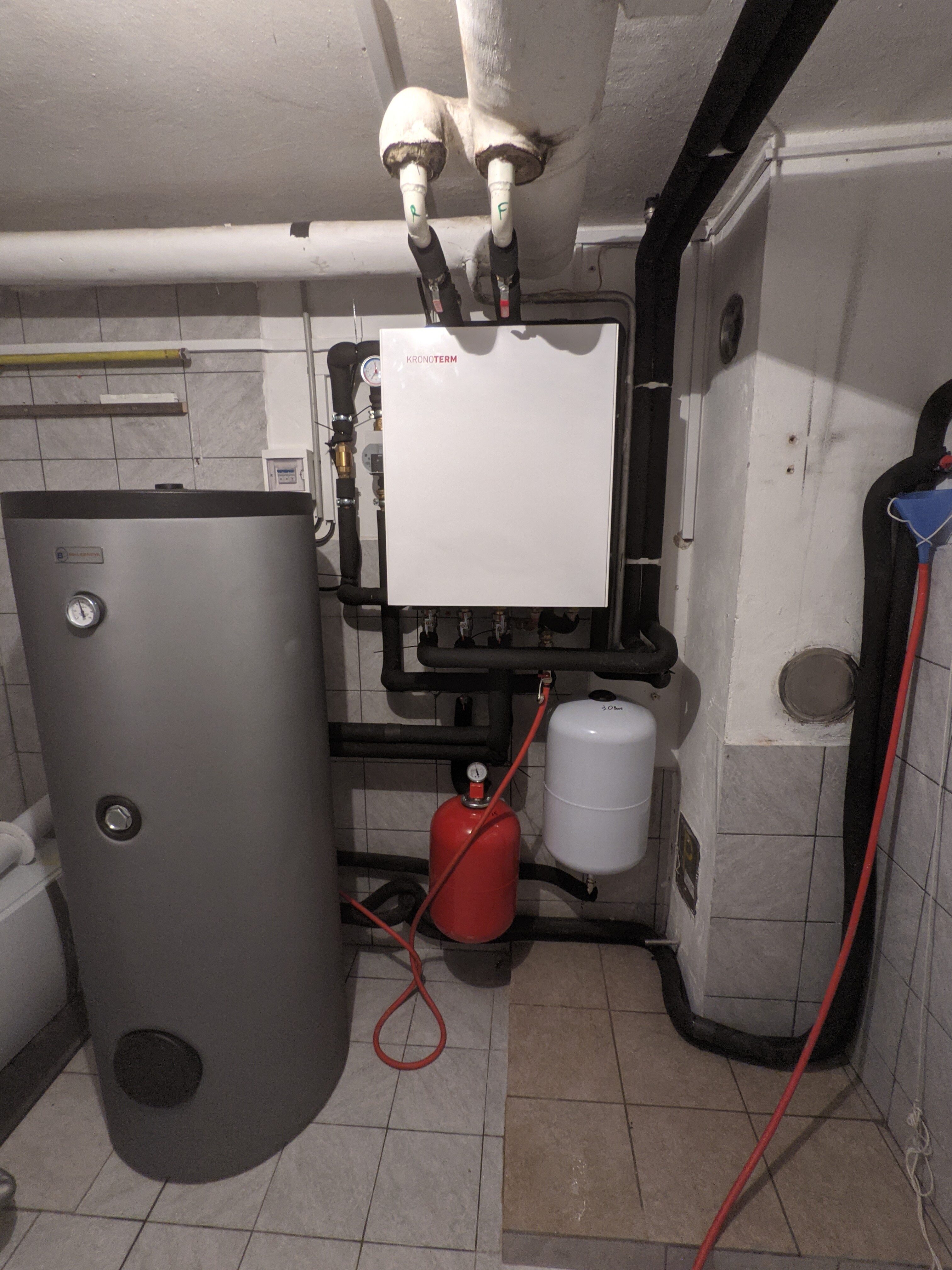 Odstranili smo staro plinsko peč in sanitarno toplotno črpalko ter namestili toplotno črpalko Kronoterm Adapt, ki zdaj zagotavlja tako ogrevanje kot toplo vodo.